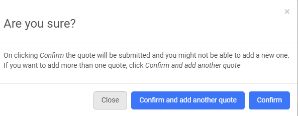 A pop up will appear which will allow the contractor to confirm and add another quote or confirm and not add another quote. If the contractor does not want to submit another quote they can go ahead and select confirm.