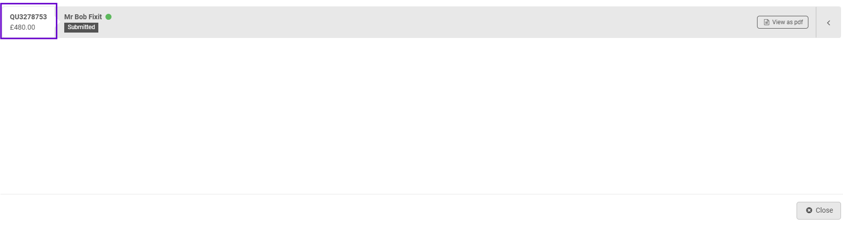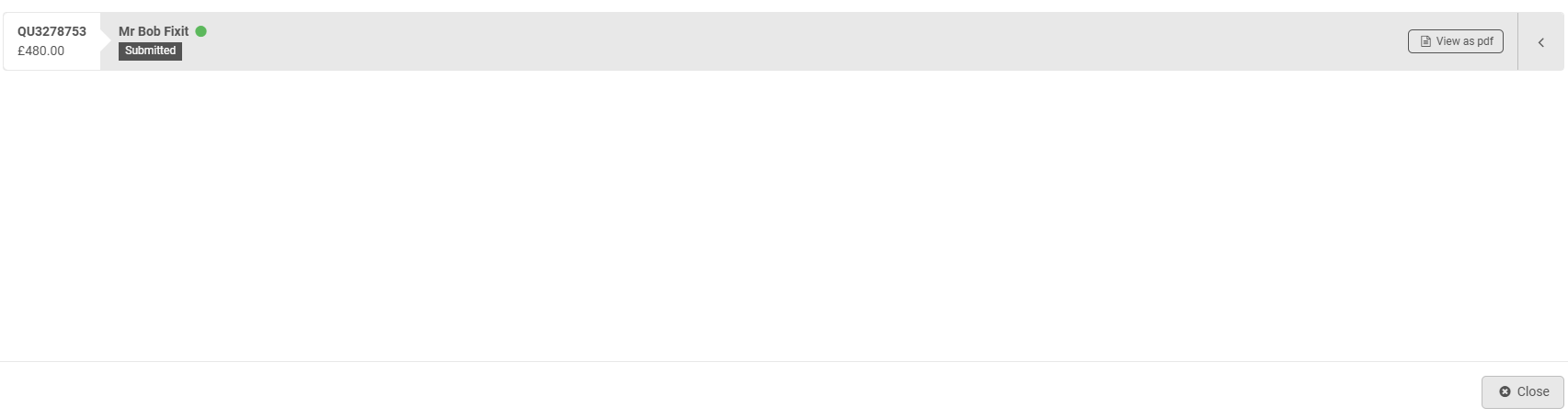 Clicking on 'Review quotes' will show you the following pop up where you can view the quote(s) which have come in for this job: