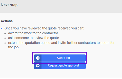 Back on the 'Next steps' tab, if you are happy with the quote you will want to click 'Award job':
