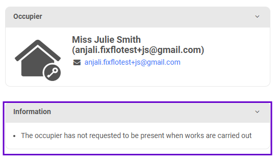 In scenarios 1, 2 and 3 the occupier will receive an email to say that the work is due for completion with a time and date.