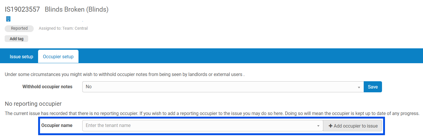 Regardless of the reason, there can be instances where you need to add an occupier to a maintenance issue at a later date.
