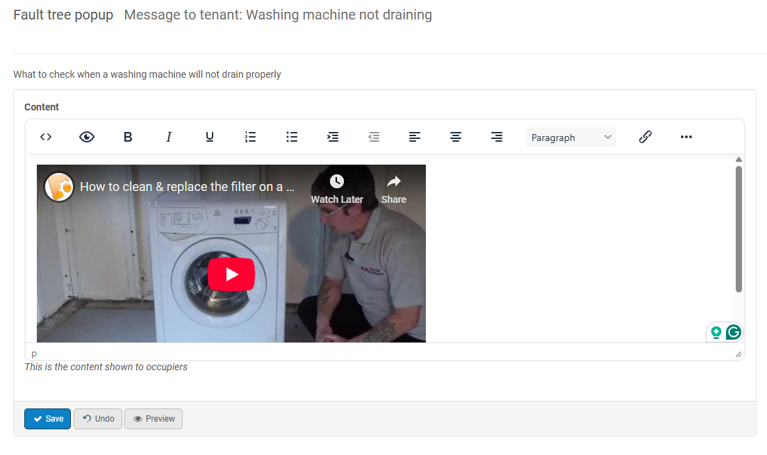 You can use videos to suggest recommendations of things to check before a tenant reports an issue through to you, or tell them how to resolve an issue by themselves such as changing batteries in a smoke alarm.