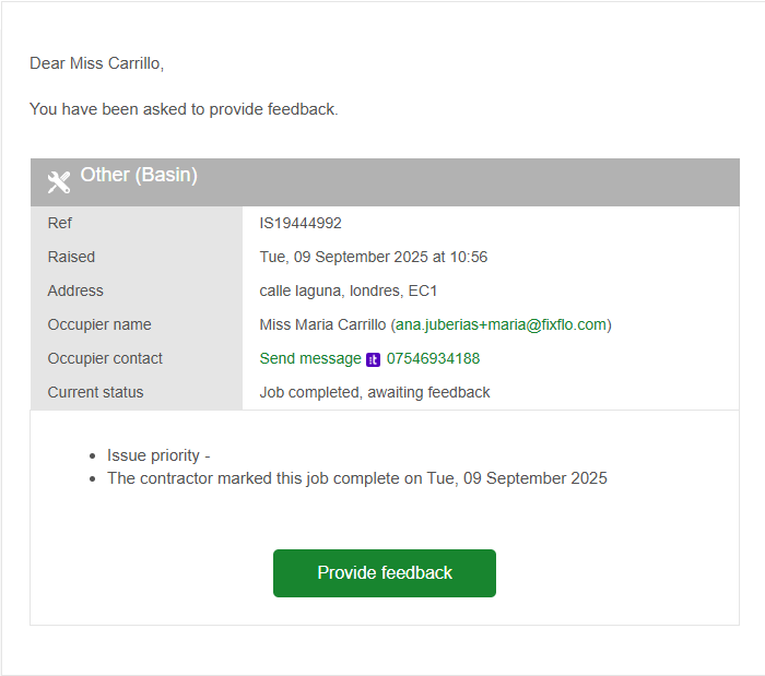 If you have asked landlords to provide advice on works in regards to next steps, allocated a job to them or requested that they review quotations, they will also receive reminder emails of their outstanding tasks: