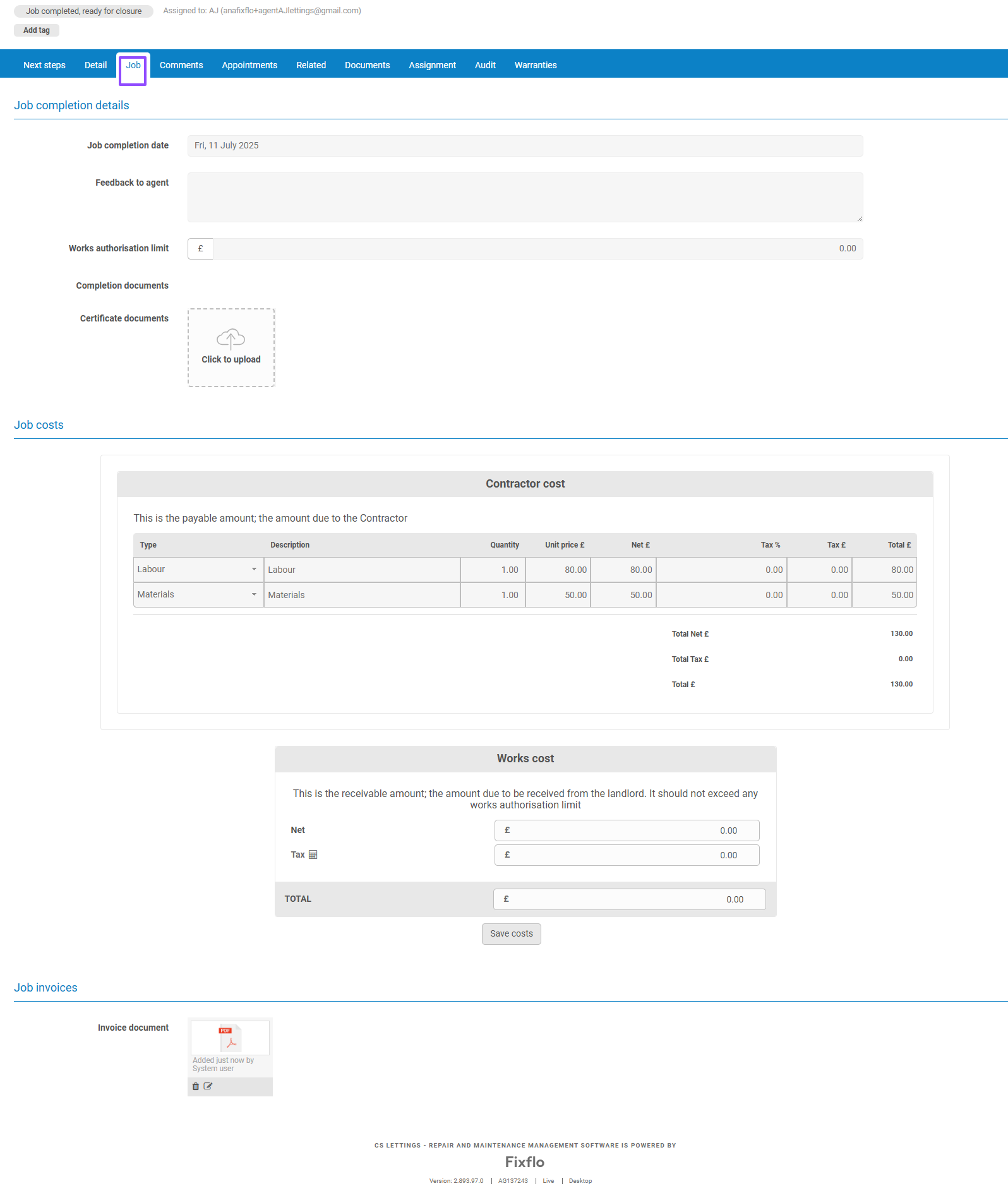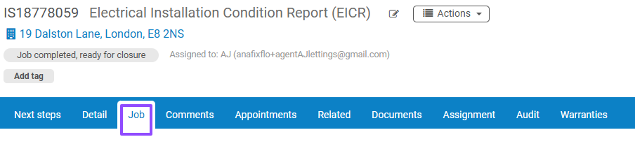 Once a job has been completed, a new tab will appear on the issue number between the 'Detail' and 'Comment' called 'Job'.