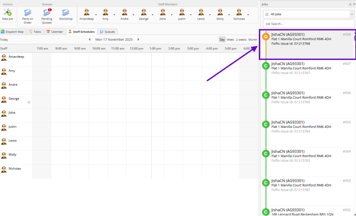 When a quote has been requested for a new job in Fixflo, a Quote Job will appear in ServiceM8.