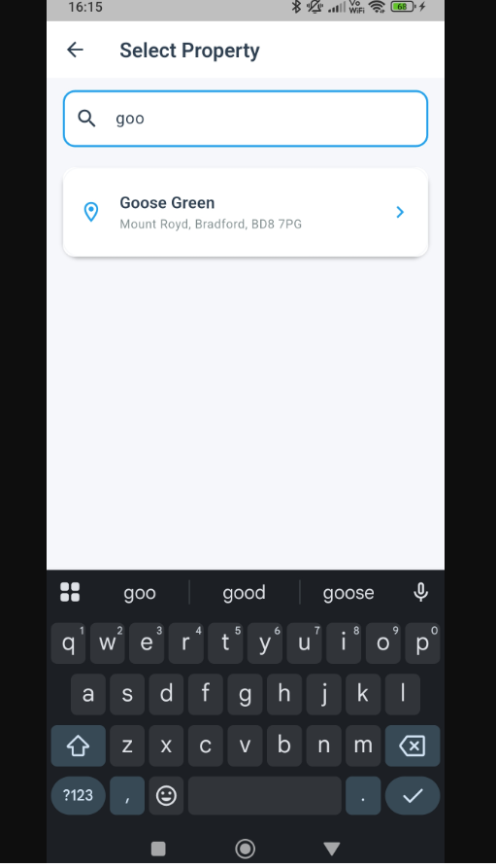 Once logged in, you can search for and select properties directly from Fixflo. You will only see properties you already have access to, and the property must already exist in Fixflo before you can start an inspection.