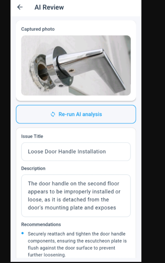 The Aidenn Inspect app will help you capture images, notes, and inspection findings quickly, with AI-supported descriptions and recommendations where relevant.